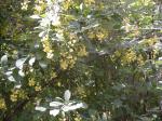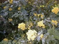 An upright shrub, 1.5 to 2 m tall. In winter, the shoots are reddish-brown, thorns very variable, at the base of long annual shoots leaf-shaped, higher up three-lobed, at the ends single. Leaves elliptical or obovate, rounded at the top, length: 7-9 cm, with a bristly serrated edge, stiff and leathery. Yellow flowers, gathered in clusters, strongly fragrant (pleasant or not depending on taste). Fruits more or less spherical, about 8 mm in diameter. A very decorative shrub with drooping branches and attractive bright red autumn leaf coloration. Resistant to frost and stem rust.