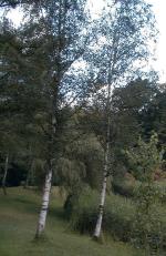 A tree up to 30 meters tall with a delicate crown shape due to thin, dangling shoots. Bark is thin, white, peeling in rings, thick, black, and cracked at the base of old trunks. Shoots covered with hard warts, rough, hairless. Leaves in groups of 2-3 on short shoots, triangular or diamond-shaped (3-7 cm long), doubly serrated, smooth or rough, youngest leaves sticky. The tree is very tolerant regarding soil and at the same time one of the most beautiful native trees, decorative at any time of the year.