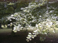 A tree with a beautiful shape, up to 30 m tall. The crown is dense and low-set. The bark is thin and smooth, ash-gray. The shoots are zigzag-shaped, the buds spindle-shaped, long and sharp, protruding, arranged alternately. The leaves are ovate or elliptical, almost entire, young ones with silky hairy petioles, older ones with long hairs only on the veins on the underside. In autumn, they turn yellow, orange to brown, and often remain on the tree until spring. The fruits, nuts, set in pairs in a four-valved woody fruit cover called beech nut or cupule. The tree requires fertile, fresh, clayey or clay-sandy soils, does not tolerate dry air, shade-loving. It does not withstand severe frosts and May frosts.