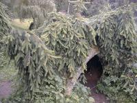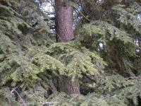 Tree-like growth, up to approx. 20 m tall, curly twigs with bent ends. Very short needles (3-4 mm long)