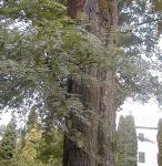 The tree reaches 25-30 m in height. Leaves vary from 15 to over 30 cm in length with 5-7 lobes, deeply indented after the second or third pair of lobes. Fruits appear singly on twigs, acorns half or more deeply hidden in cups. The scales on the cup are elongated and protruding. Fruits on the specimen in Krasiczyn do not ripen.