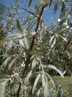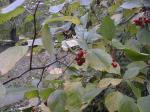 A shrub up to 1-2 m high. Young shoots softly hairy. Leaves broadly elliptical, ovate or inversely ovate up to 6-7 cm long, softly hairy underneath. Flowers white or creamy, often pinkish outside, size 1-1.5 cm. Fruits ripen in July - shiny red-cherry, 1 cm in diameter. Decorative shrub with grey-green coloration and numerous fruits. Suitable for dry sunny and semi-shaded places. Frost resistant.