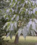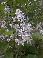 The tree in our climate reaches a height of 15-20 m. It often grows bushy or has a low-set crown. The broadly ovate leaves are 10-25 cm long, shortly pointed at the tip, crushed leaves smell unpleasant, the youngest leaves are brownish. The "orchid-like" flowers, 4-5 cm in diameter, white with purple spots and yellow streaks, are gathered in inflorescences - multi-flowered, upright panicles. The flowers are nectar-producing. Decorative fruits - long, hanging, pod-like capsules. The tree is planted as a solitary specimen. It is not very frost-resistant.