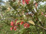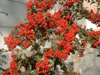 A low, wide shrub with a nice shape, branches arching downward toward the ground. Single thorns on the shoots. Small, inversely ovate, entire leaves, bright red, orange, or yellow in autumn. Yellow flowers, reddish on the outside, hang singly or in clusters of 2-5. Fruits - bead-like - elliptical, shiny, bright red, hang along the arching branches even until winter. Perfectly suited for landscaping slopes and inclines, creating low hedgerows. Resistant to rust. Not completely frost-resistant.