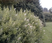 A dense shrub up to 1.5 m high. Thin, hanging, felt-like hairy shoots. Leaves narrow-lanceolate, 2-2.5 cm long, densely hairy, gray-green. White flowers gathered in corymbs along the entire length of last year's long shoots. Light-loving shrub, abundantly flowering, during flowering completely covered with flowers with garland-like branches - very decorative. Frost and drought resistant. Perfectly serves as an untrimmed hedge.