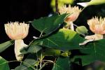 A tall tree with a wide crown. Buds spatulate-flattened, covered with 2 fused stipular scales. Leaves on long petioles, 4-lobed, lobes pointed, leaf (up to 20 cm long) notched at the apex. Flowers (4-5 cm in size) tulip-like, yellow-green with an orange spot on the inner petals (9 - 3 in whorls), numerous stamens and pistils arranged spirally on an elongated flower base. Fruits: 1- or 2-seeded winged nuts, 80-100 in erect, cone-like fruit clusters (up to 10 cm long). They usually break apart on the trees. Tulip tree fruits rarely mature in Poland, however, a specimen in Krasiczyn during an exceptionally early and warm summer scattered seeds from which seedlings grew - sensitive to frost. Older trees - frost resistant. Tulip trees are mainly planted as solitaires to showcase the bright color of the leaves and the tree’s habit. Autumn coloration - golden yellow.