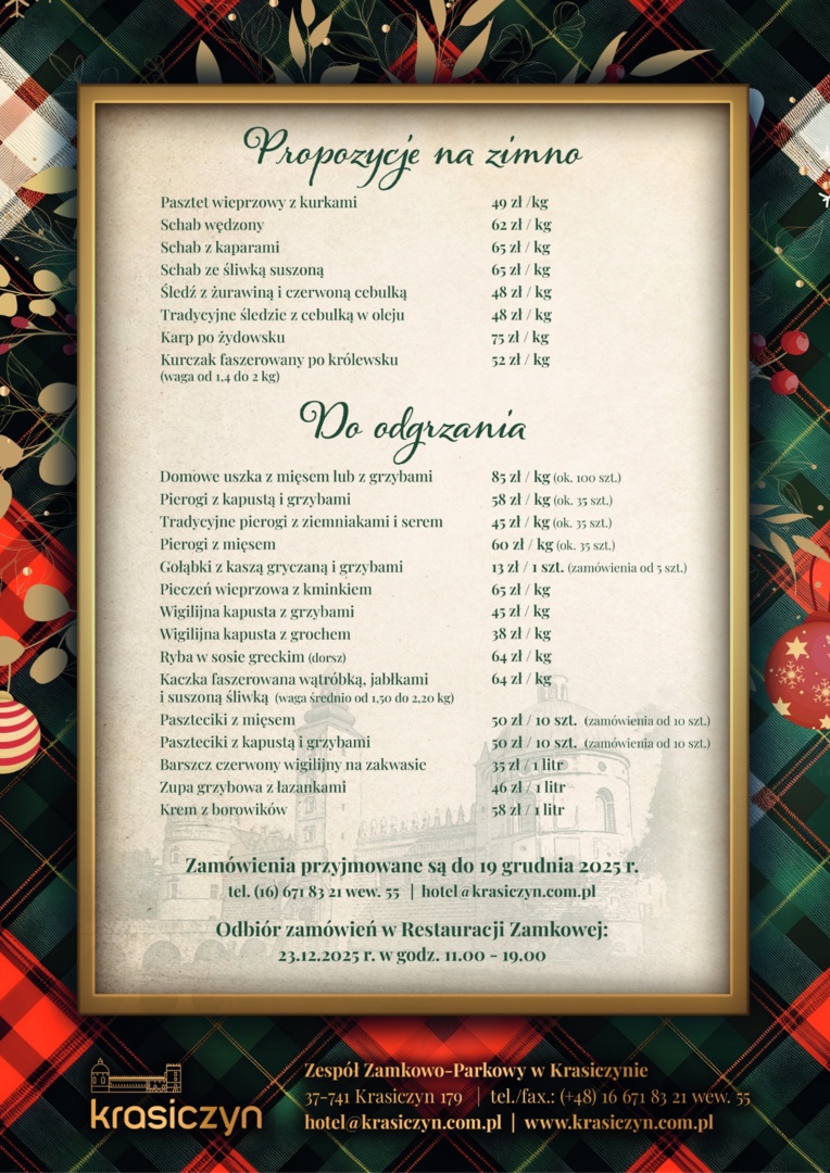 Zachęcamy do skorzystania z oferty Cateringu Świątecznego z Restauracji Zamkowej.