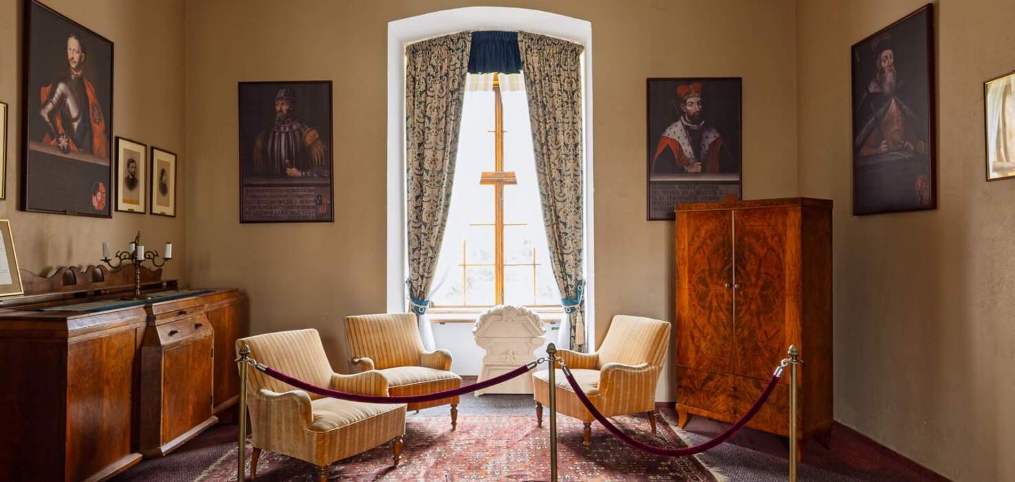 - Trasa zwiedzania obejmuje: dziedziniec zamkowy, kryptę w Baszcie Boskiej, gabinet myśliwski, kaplicę zamkową pw. Wniebowzięcia Najświętszej Marii Panny, sale ekspozycyjne.
